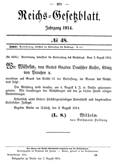 Die deutsche MobilmachungDie Verkündung der Mobilmachung in Berlin Berlin,
