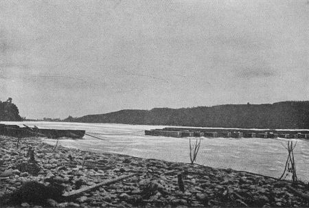 Hochwasser zerrissene österreichisch-ungarische Pontonbrücke über die Piave