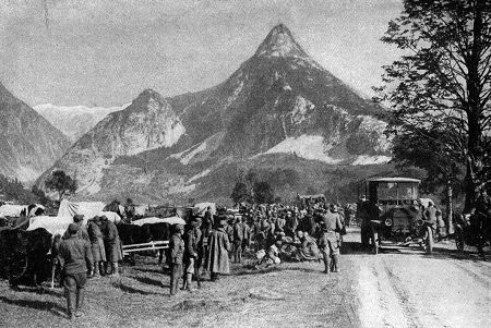 Auf der Talstraße über Karfreit vorstoßende Divisionen